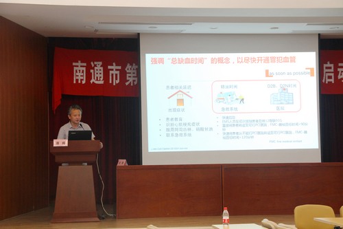 本次启动会特别邀请到苏北人民医院纪军教授、通大附院潘敏教授就胸痛中心的基本概念、时间节点管理要求、院前急救系统与院内绿色通道的整合、对ACS患者的评估和救治等内容进行了详细的讲解。